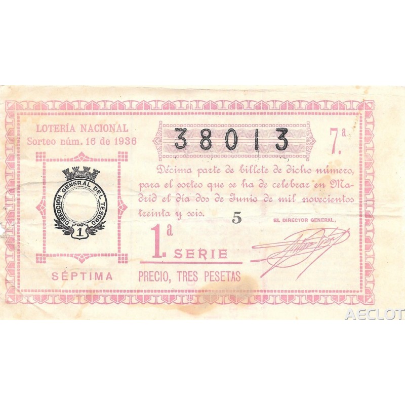Sorteo ordinario del 2 de junio de 1936. Emisión: 46.000