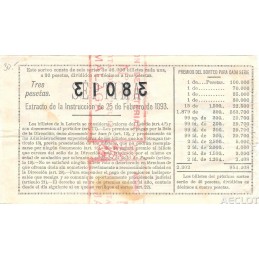 Sorteo ordinario del 2 de julio de 1934. Emisión: 42.000 TRES PESETAS