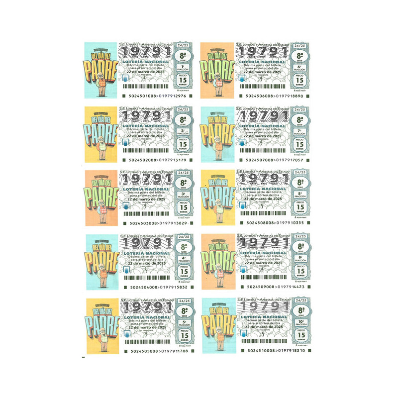 Los billetes completos contienen las 10 fracciones con tres ilustraciones distintas. En los otros siete décimos del sorteo 24/25 se repiten las imágenes.