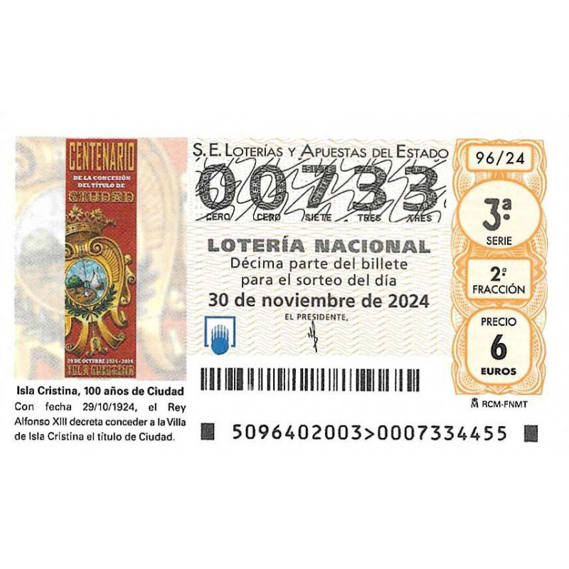 La serie, fracción, año y/o número de sorteo puede ser distinta  a la de la imagen