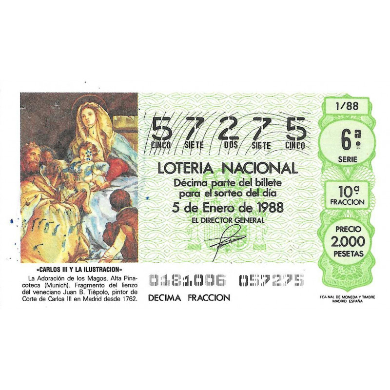 Décimo defectuoso, con pequeñas manchas de tinta