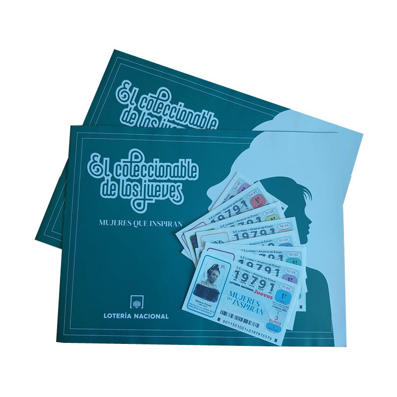 Colección completa con los 8 décimos del Coleccionable de los Jueves titulado "Mujeres que Inspiran", dedicado a un conjunto de mujeres que han desempeñado un relevante papel en la lucha por la equidad en España. Forman parte de esta colección figuras como Mariana Pineda, Concepción Arenal, Elena Masera, Dolors Aleu i Riera, María Guerrero, María de Maeztu, Clara Campoamor y Angela Robles.