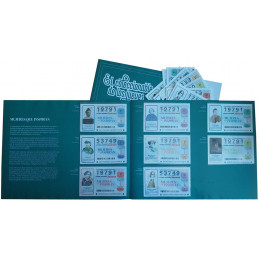 Los décimos van colocados en el interior de una funda transparente que está adherida al álbum que se envía de regalo, evitando así pegar los décimos al álbum.