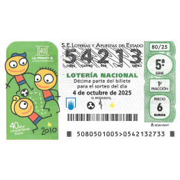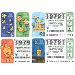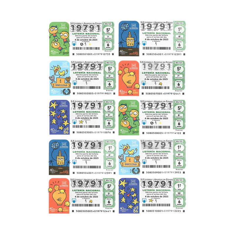 Los billetes completos contienen las 10 fracciones con cinco ilustraciones distintas. En los otros cinco décimos del sorteo 80/25 se repiten las imágenes.