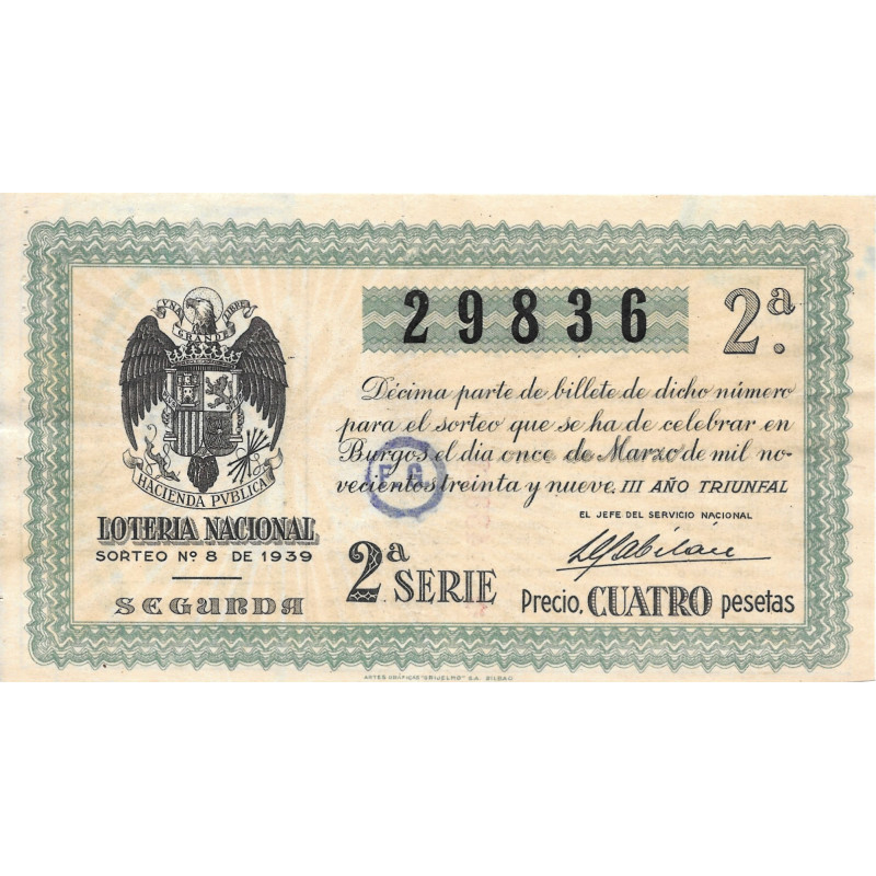 Lotería de fecha 11 de marzo de 1939. Emisión: Dos serie de 34.000 billetes