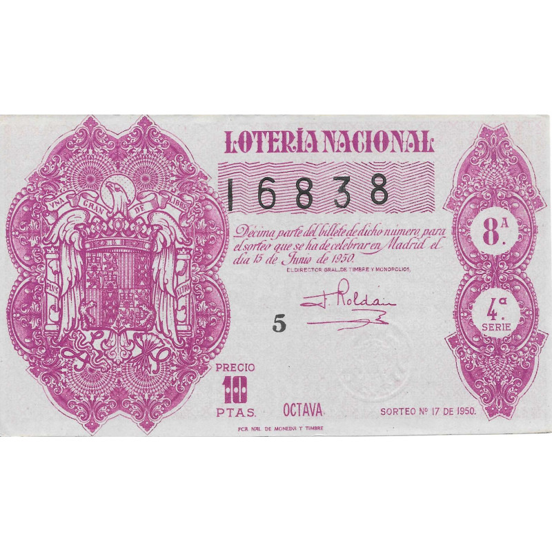 Lotería de fecha 15 de junio de 1950