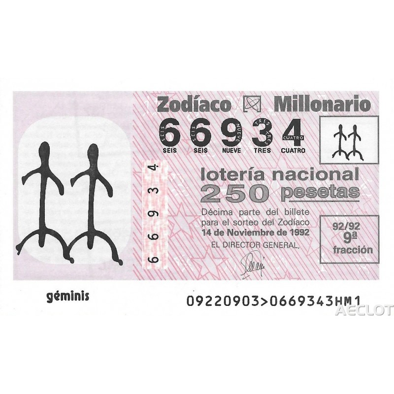 Sorteo 14 de noviembre de 1992. Géminis