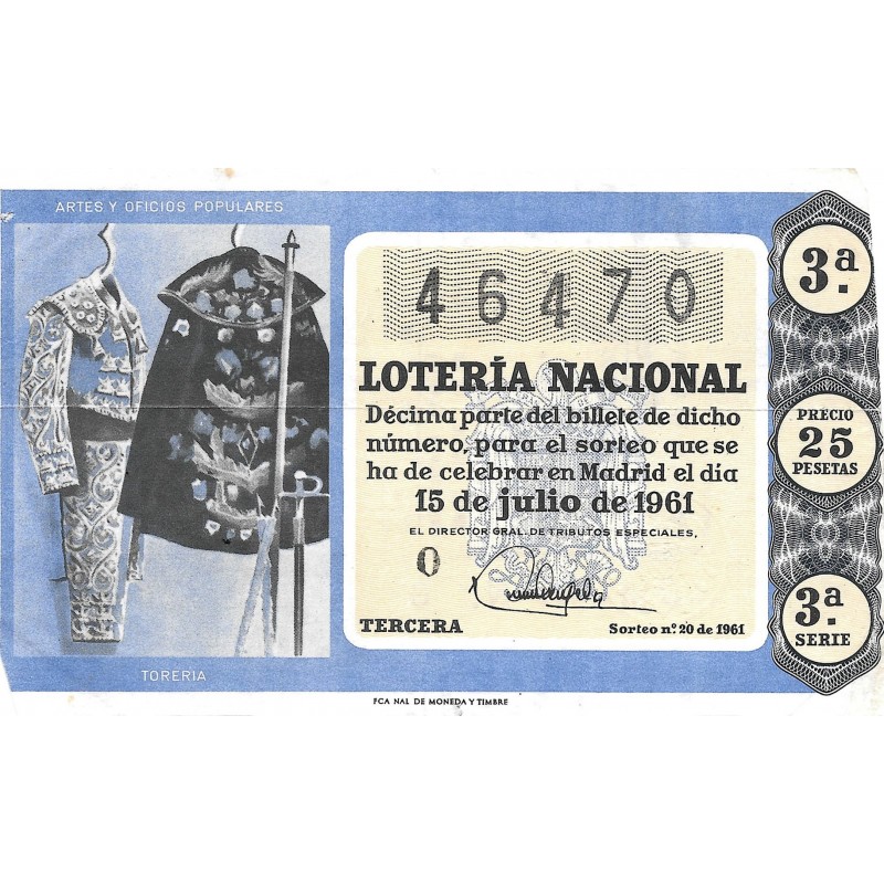 Lotería de fecha 15 de julio de 1961