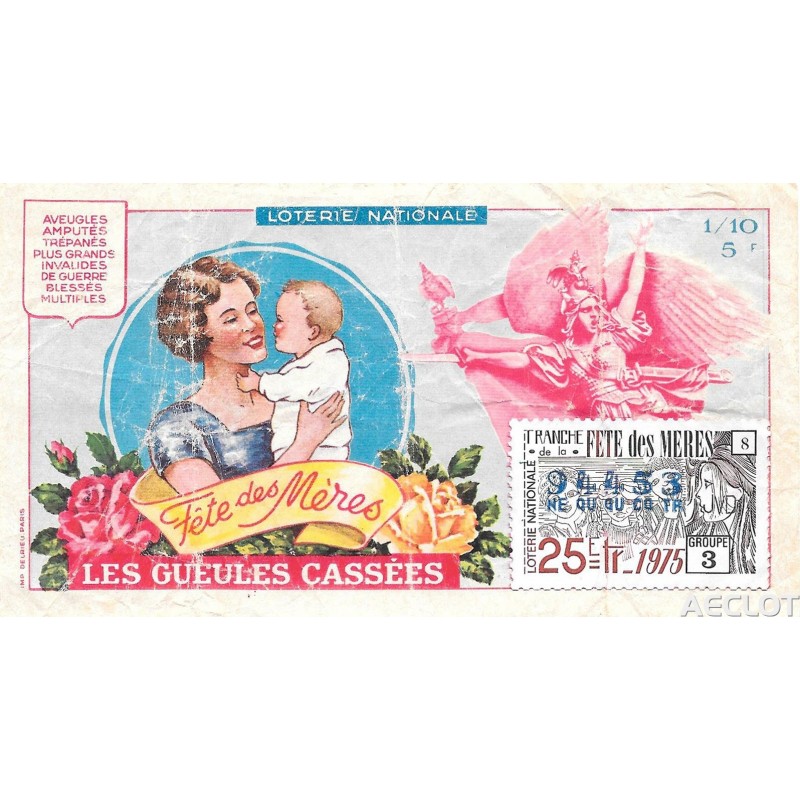 Les Gueules Cassées. Entre 1931 y 1933, los "Gueules Cassées", asociados a "The Broken Wings" y las otras asociaciones de víctimas de la guerra (los Amputés de Guerre, los Ciegos de Guerra, los Mutilados de los Ojos, los Mayores Inválidos ...) lanzaron una subscripción nacional acompañada de un Sorto que se llamará "La Deuda". El primer boleto se presentó solemnemente a Sr. Gaston Doumergue, presidente de la República, durante su visita a la finca Moussy-le-Vieux. Esta rifa tuvo una salida considerable.Los lotes van desde bicicletas hasta aviones de pasajeros !!!