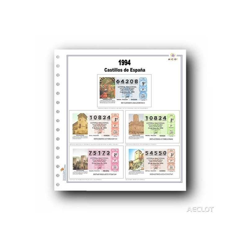 Hojas para coleccionar y colocar los 51 décimos distintos sorteados en 1994 dedicados a: Castillos de España.