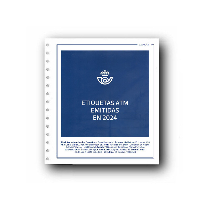 Hoja para coleccionar y colocar la carpeta que contiene los ATMs emitidos en 2024 editada por la F.N.M.T.