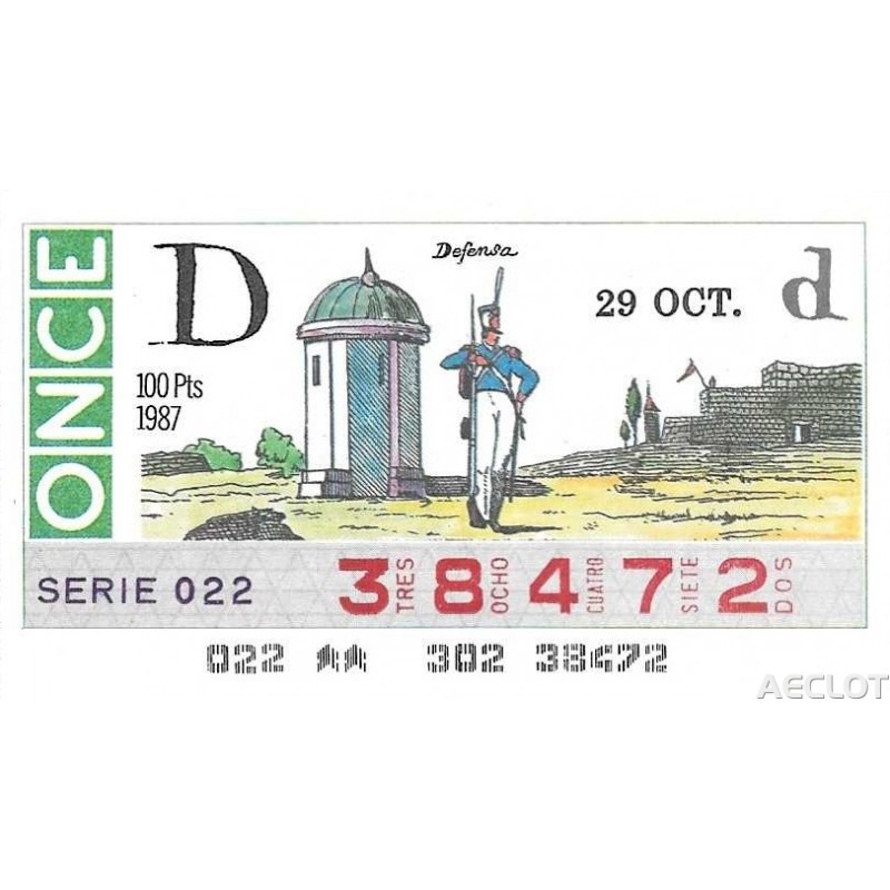 Del 1 de octubre al 3 de noviembre de 1987, la Organización Nacional de Ciegos decidió ilustrar los cupones diarios de sus sorteos ordinarios con imágenes cuya primera inicial era la protagonista de dicho cupón, tanto en mayúscula como minúscula. Así, hasta conseguir formar y leer el eslogan: “ LA ILUSIÓN DE CADA DÍA “, con todos los cupones ordenados por fecha de menor a mayor (sin incluir los Viernes).