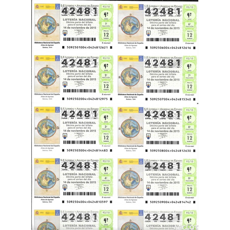Paquete de 10 hojas seminuevas en 4 anillas para décimos de Lotería Nacional