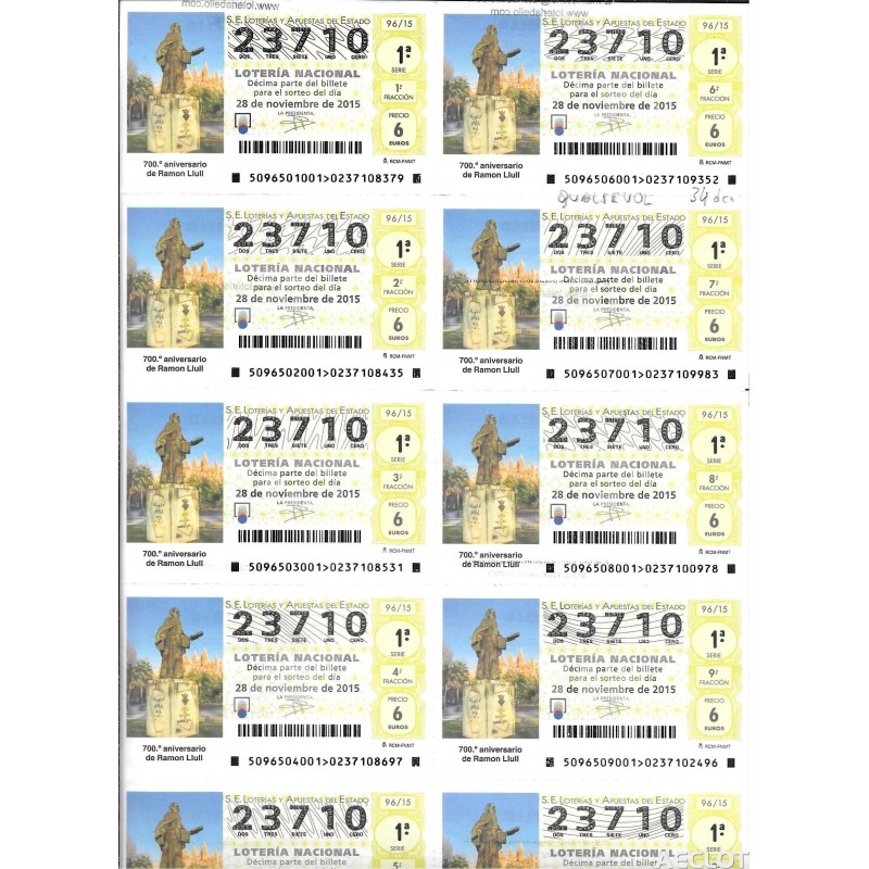 Paquete de 10 hojas seminuevas en 4 anillas para décimos de Lotería Nacional