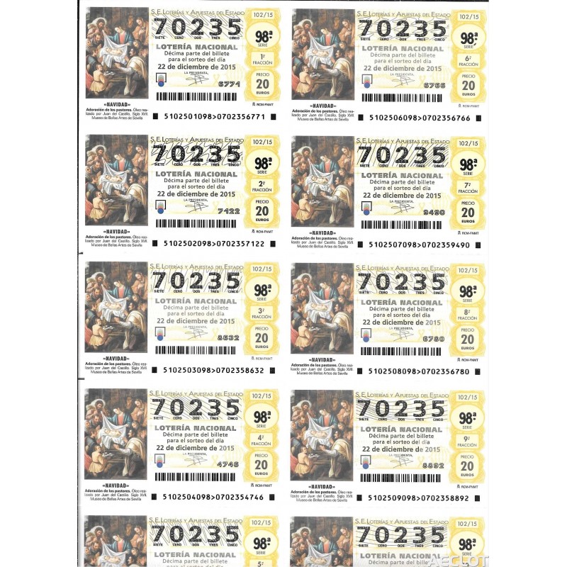 Hojas seminuevas para décimos de lotería