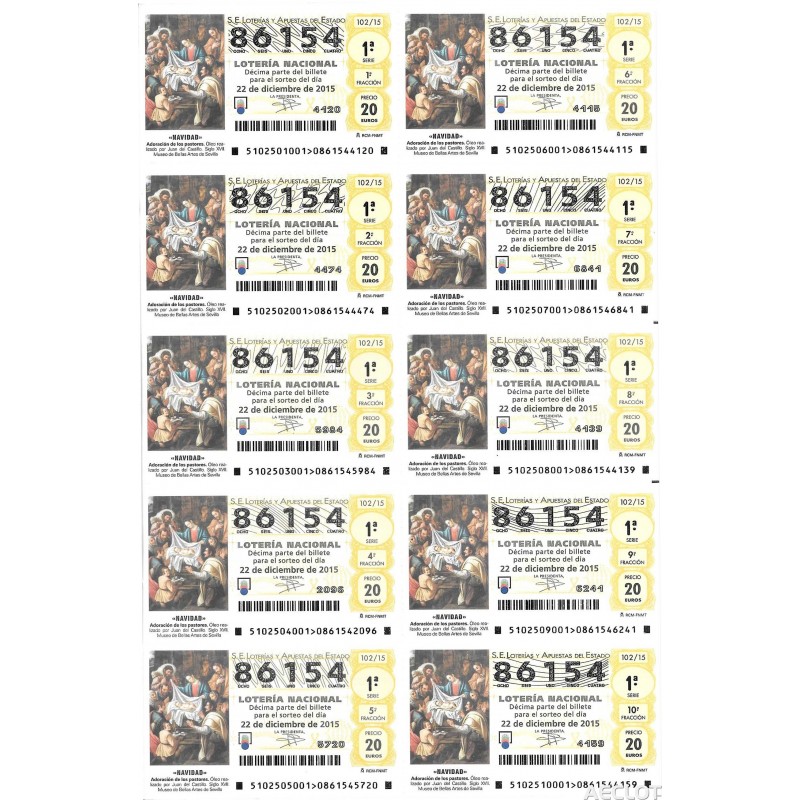 Paquete de 10 hojas seminuevas en 4 anillas para décimos de Lotería Nacional