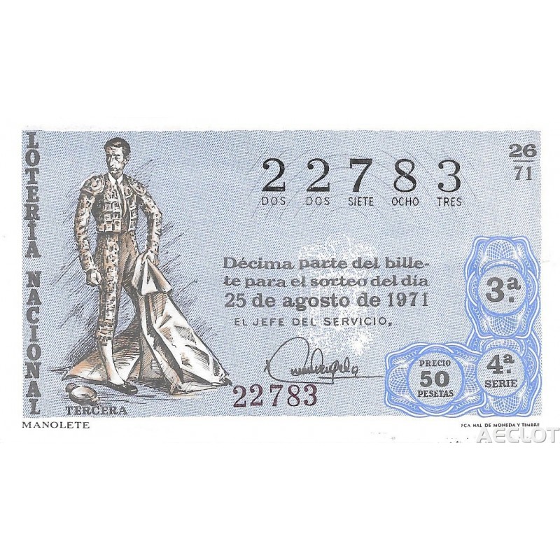Lotería de fecha 25 de agosto de 1971