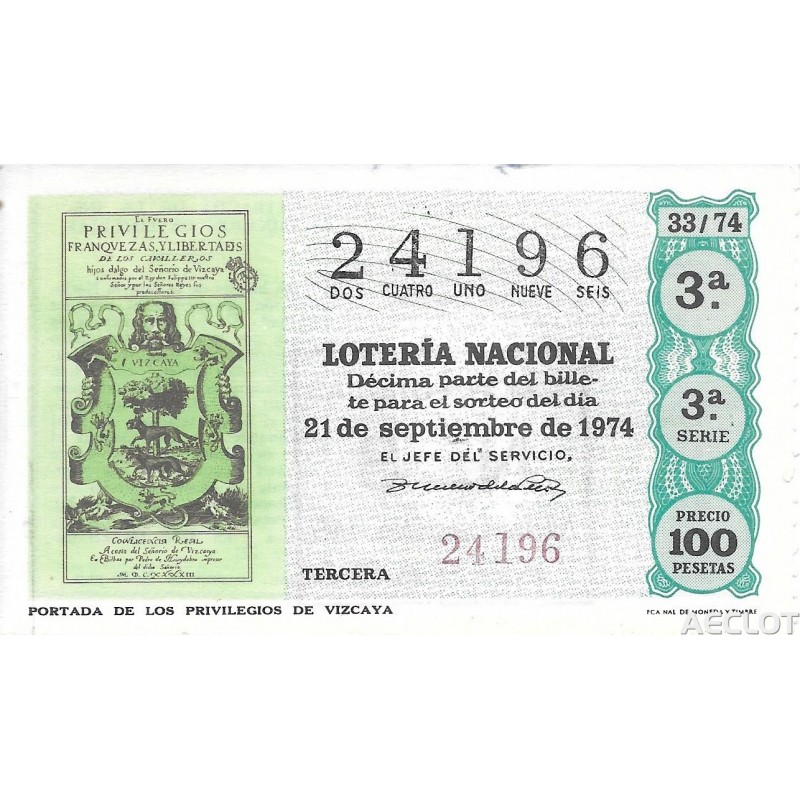 Lotería de fecha 21 de septiembre de 1974