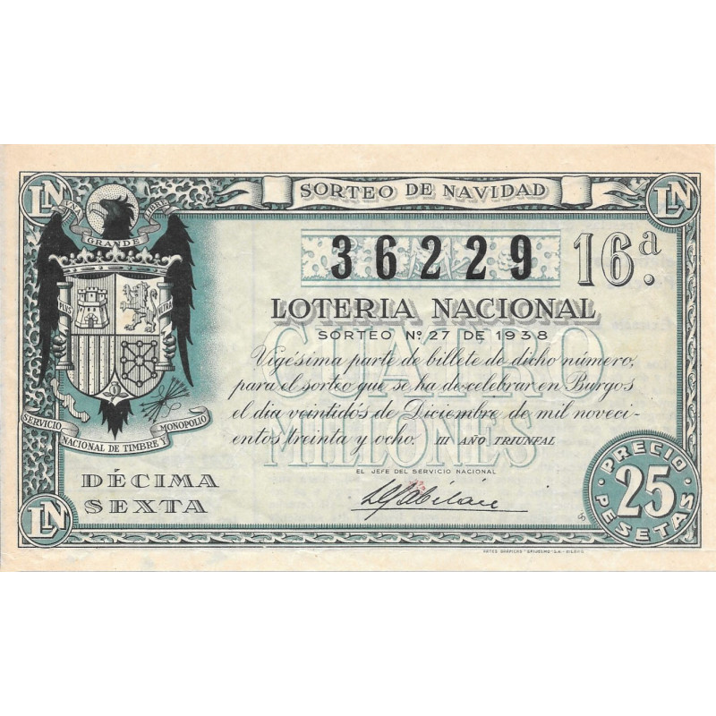 Lotería de fecha 22 de diciembre de 1938. Emisión: Una serie de 40.000 billetes