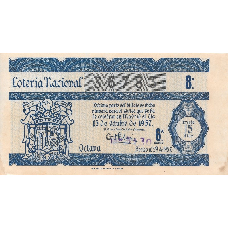 Lotería de fecha 15 de octubre de 1957