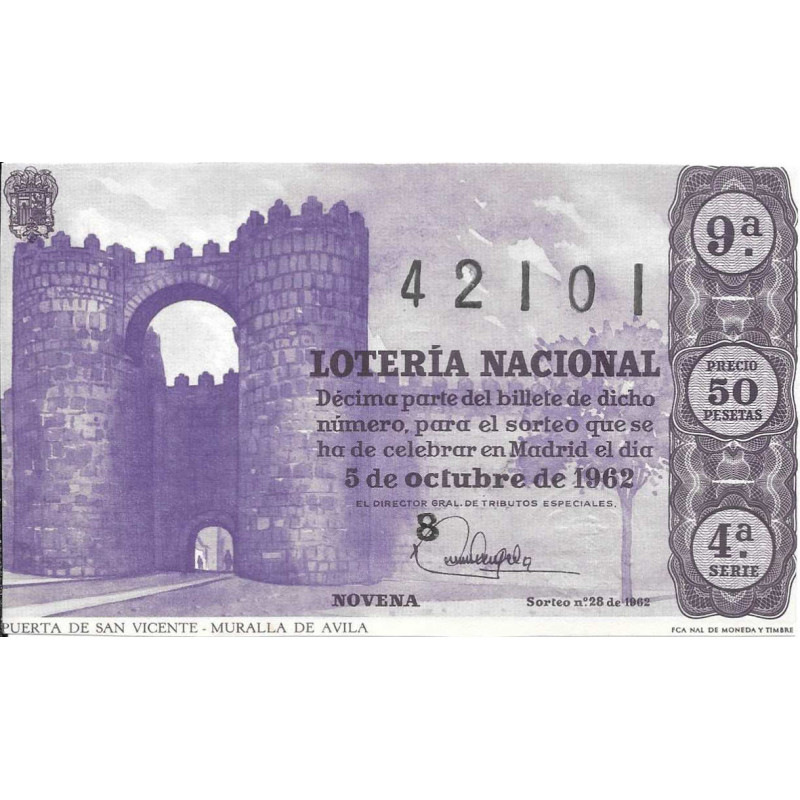 Lotería de fecha 5 de octubre de 1962