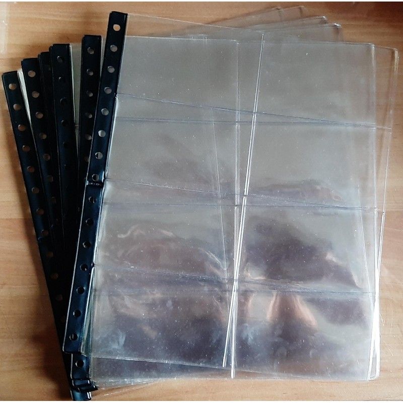 Fabricadas en plástico transparente con lateral de anillas en negro. Pueden colocarse en álbumes y clasificadores de 4 o 15 anillas.
