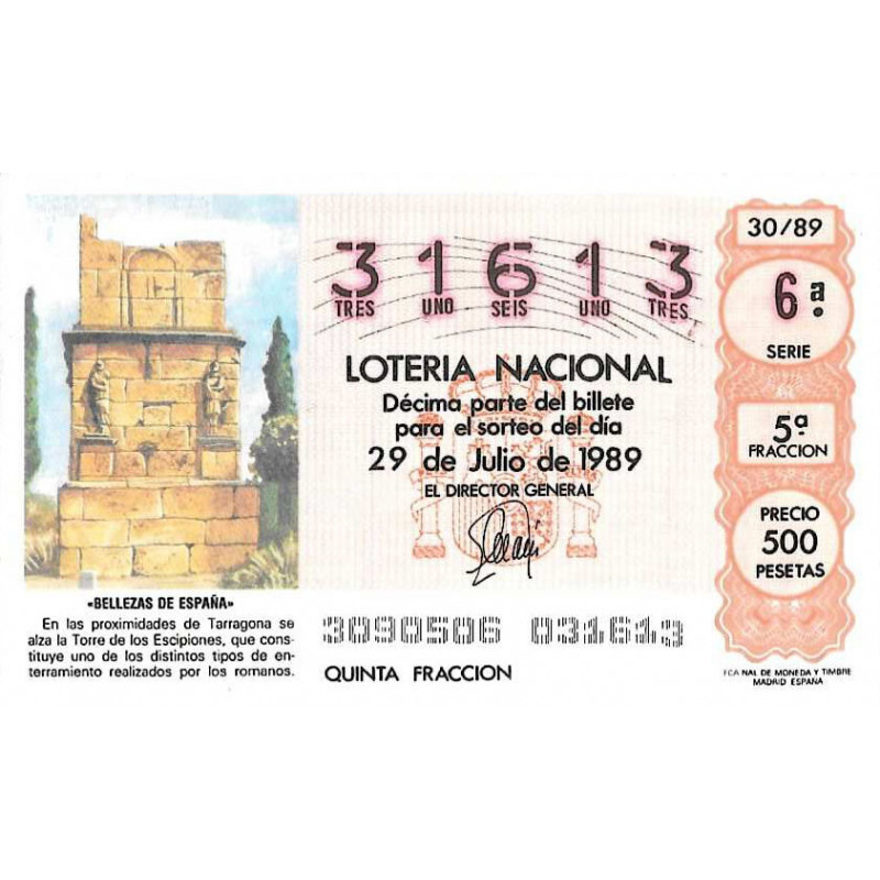 Sorteo 29 de julio 30/89