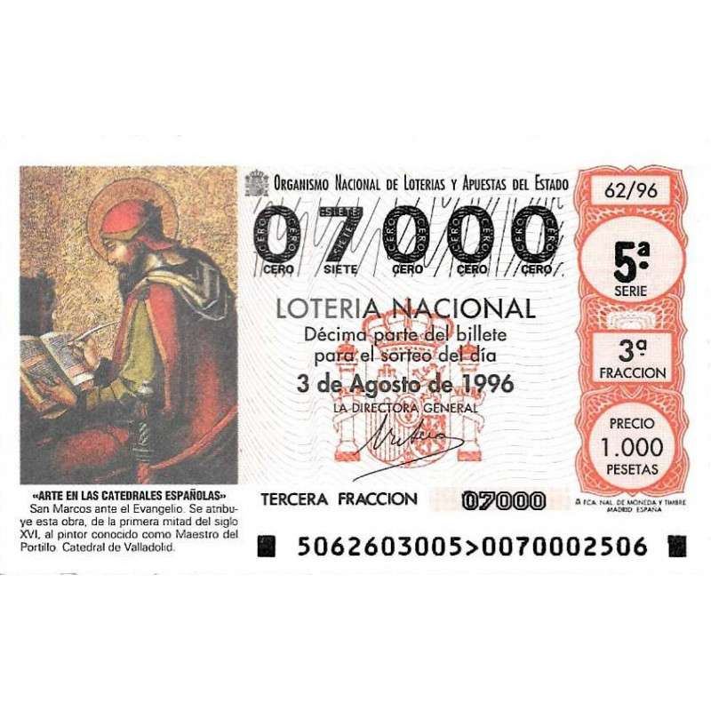 Sorteo 3 de agosto 62/96