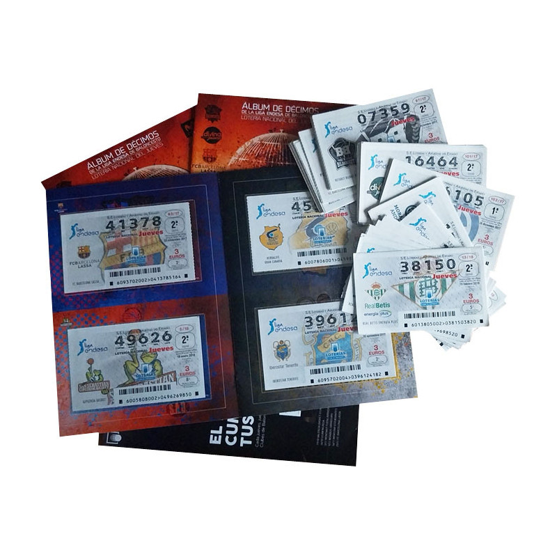 Los décimos van colocados en el interior de una funda transparente que está adherida al álbum que se envía de regalo, evitando así pegar los décimos al álbum.