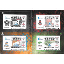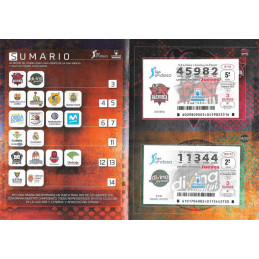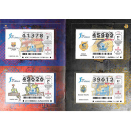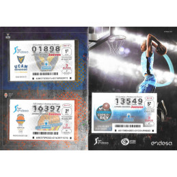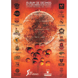 Colección completa con los 19 décimos de Lotería del Jueves dedicada a Equipos de Baloncesto masculinos de la Liga Endesa. Los décimos estan ilustrados con los escudos de Baskonia, Joventut, FC Barcelona Lassa, Gipuzkoa Basket, Herbalife Gran Canaria, Iberoestar Tenerife, Monbus Obradoiro, Montakit Fienlabrada, Morabanc Andorra, Movistar Estudiantes, Real Betis Enerigia PLus, Real Madrid Baloncesto, Retabet Bilbao Basket, San Pablo Burgos, Tecnyconta Zaragoza, Unicaja, UCAM Murcia CB, Valencia Basket Club y el dedicado a la Copa del Rey Gran Canaria'18.