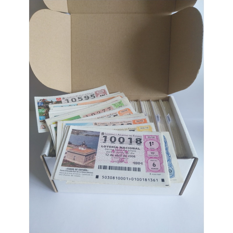 Lote con números comprendidos entre el 01000 y el 09999. Décimos de Lotería Nacional de los sorteos del sábado con todos los números diferentes y clasificados.