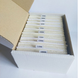 Se encuentran clasificados por numeración y están ordenados de menor a mayor para facilitar su búsqueda. Incluye los separadores y bolsitas de gel para evitar la humedad.